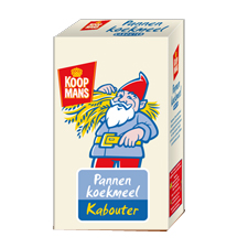 Pannenkoekmeel Kabouter Koopmans Pannenkoekmeel Kabouter is een traditioneel pannenkoekmeel. Met het authentieke Pannenkoekenmeel Kabouter maak je ouderwets lekkere pannenkoeken. Pannenkoekenmeel Kabouter is op basis van tarwe, boekweit en rogge. Je voegt zelf nog melk, zout en eieren toe en bakken maar. Ook lekker met stukjes zure appel en rozijnen.
