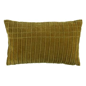 The Aura decorative cushion is made of velvet with a modern grid pattern on the front. The grid consists of a relief of vertical lines with a few horizontal lines at the top creating a block shape. The colour of the decorative cushion is green and both the front and back are made of 100% cotton velvet. The dimensions are 30 x 50 cm. This cushion has a zip at the bottom and comes with a springy polyester inner cushion.