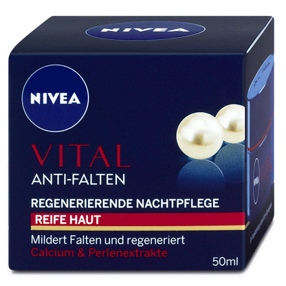 Nivea Vital restorative night cream strengthens the fragile, dry and mature skin during the night. It allows for a clean and relaxed skin in the morning. Evening primrose oil and calcium stimulate and strengthen on the natural resistance of the skin during the night. Natural vitamin F and essential building materials provide intensive hydration. Panthenol stimulates the skin supports powerful refresh progress throughout the night and the recovery process. Vitamin A stimulates the cell renewal process intensive and supports the natural regeneration throughout the night. Nivea Vital restorative night cream is dermatologically tested.