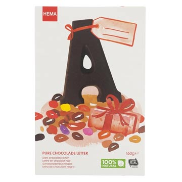 Pure chocolate letter, UTZ CERTIFIED is made with cocoa and free from artificial additives.