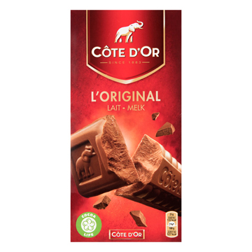 The subtle and powerful chocolate of Côte d'Or. Due to a unique production process, it makes for a smoky taste with tints of vanilla. Unchanged pleasure since 1883. Côte d'Or milk chocolate