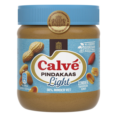 Calvé peanut butter light is the only real peanut butter, with 30% less fat and from now on also without added sugars.