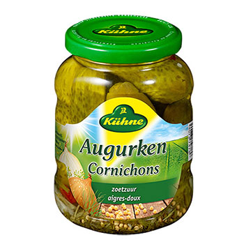 Kuhne gherkins sweet saur 330gKuhne gherkins sweet saur 330g