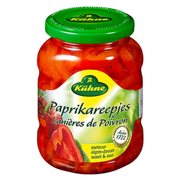 Fine, fruity pepper strips with a touch of balsamic. Ideal for in the salad or as a garnish Crunchy vegetables form the basis for a tasty salads by Kühne. All this according to original recipe and freshly prepared. Easy to garnish a dish.