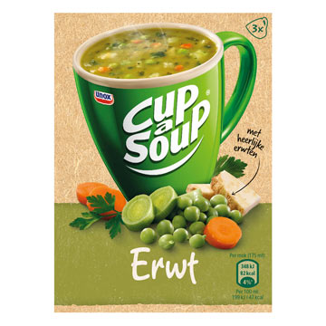 Cup a Soup is a brand of instant soup mix that comes in a variety of flavors, including pea soup. The pea soup flavor is made with dehydrated peas, along with other ingredients such as salt, maltodextrin, and yeast extract. To prepare the soup, you simply add the contents of the cup to a mug, add hot water, and stir. The soup will be ready to eat in just a few minutes. Some people add additional ingredients such as butter, cream, bacon or croutons to enhance the flavor. Overall, Cup a Soup is a convenient, easy-to-make option for a quick, warm meal.
