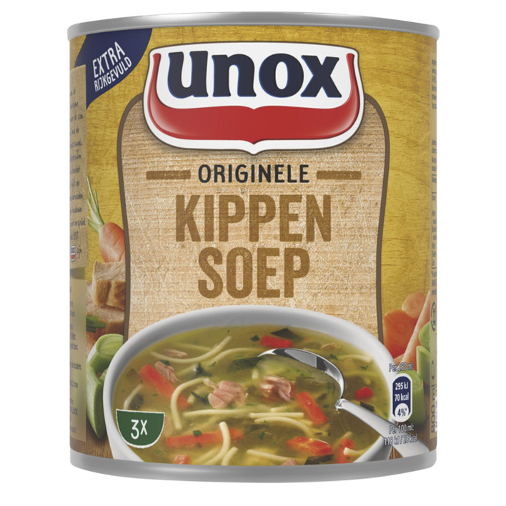 Unox original chicken soup is made with tender chicken, vermicelli and with many different types of fresh vegetables, such as carrots and leeks.