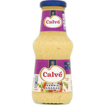 Calvé Curry Pineapple Sauce A delicious creamy curry sauce with pieces of pineapple Makes your barbecue, gourmet or daily meal even more delicious