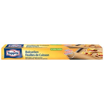 Toppits Bakvellen with 3D-structure and non-stick coating on both sides. Unique 3D-structure: pasting of reduces nutrition to the paper Non stick coating on both sides The individual bakvellen on size of a standard baking sheet (42 x 38 cm) make measuring and tear-off unnecessary Made of natural brown paper