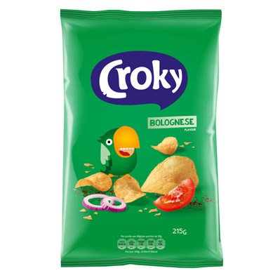Delicious crispy potato chips with a unique bolognese taste. Prepared in sunflower oil. Unique Croky Bolognese flavour.