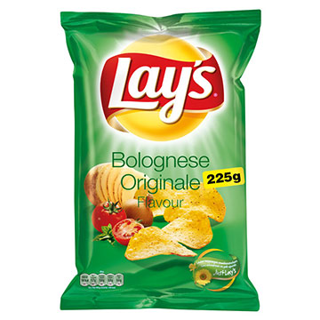 The only really lay's chips with bolognese Without artificial colors and preservatives No added flavour enhancers Contains 7-8 servings