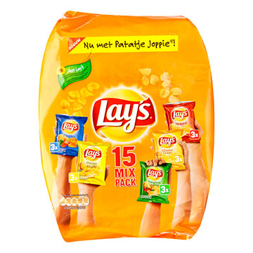 A mixpack of 5 wonderful lay's flavors Naturel, sweet pepper, onion, cheese and bolognese & Mojgan jafarian 15 bags.